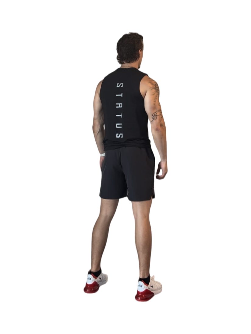 Modern rounded cut around the shoulders making your arms look exactly how we all want. Cool, breathable material perfect for the gym.